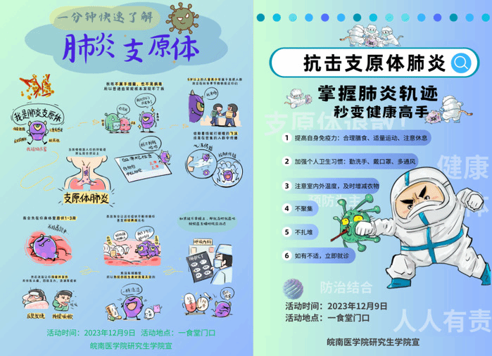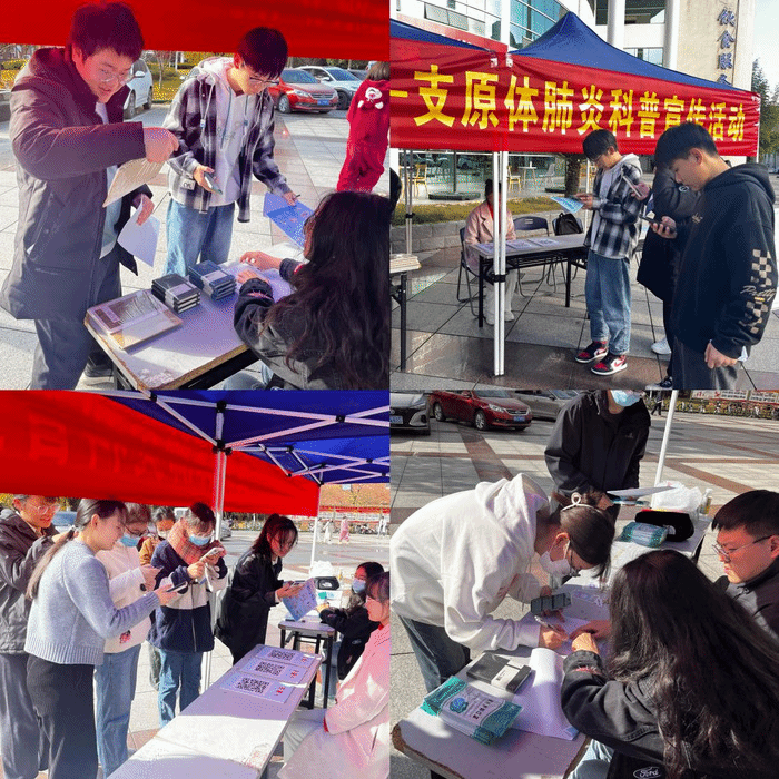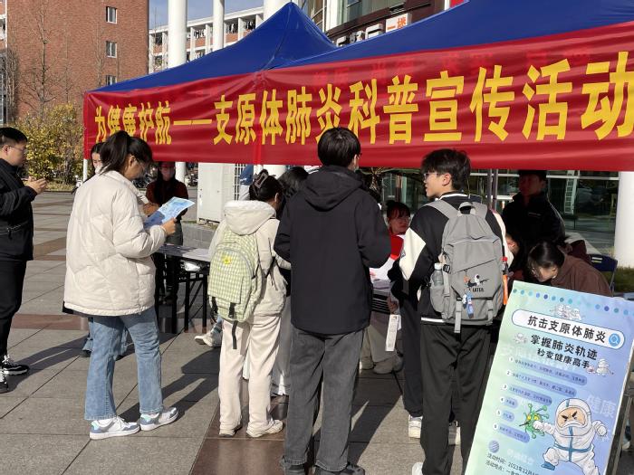 为进一步提升同学们对支原体肺炎的了解,增强做健康第一责任人的预防意识,太阳成官网践行志愿服务理念,结合研究生专业特长,于12月9日在一食堂广场开展“为健康护航——支原体肺炎科普宣传”活动。