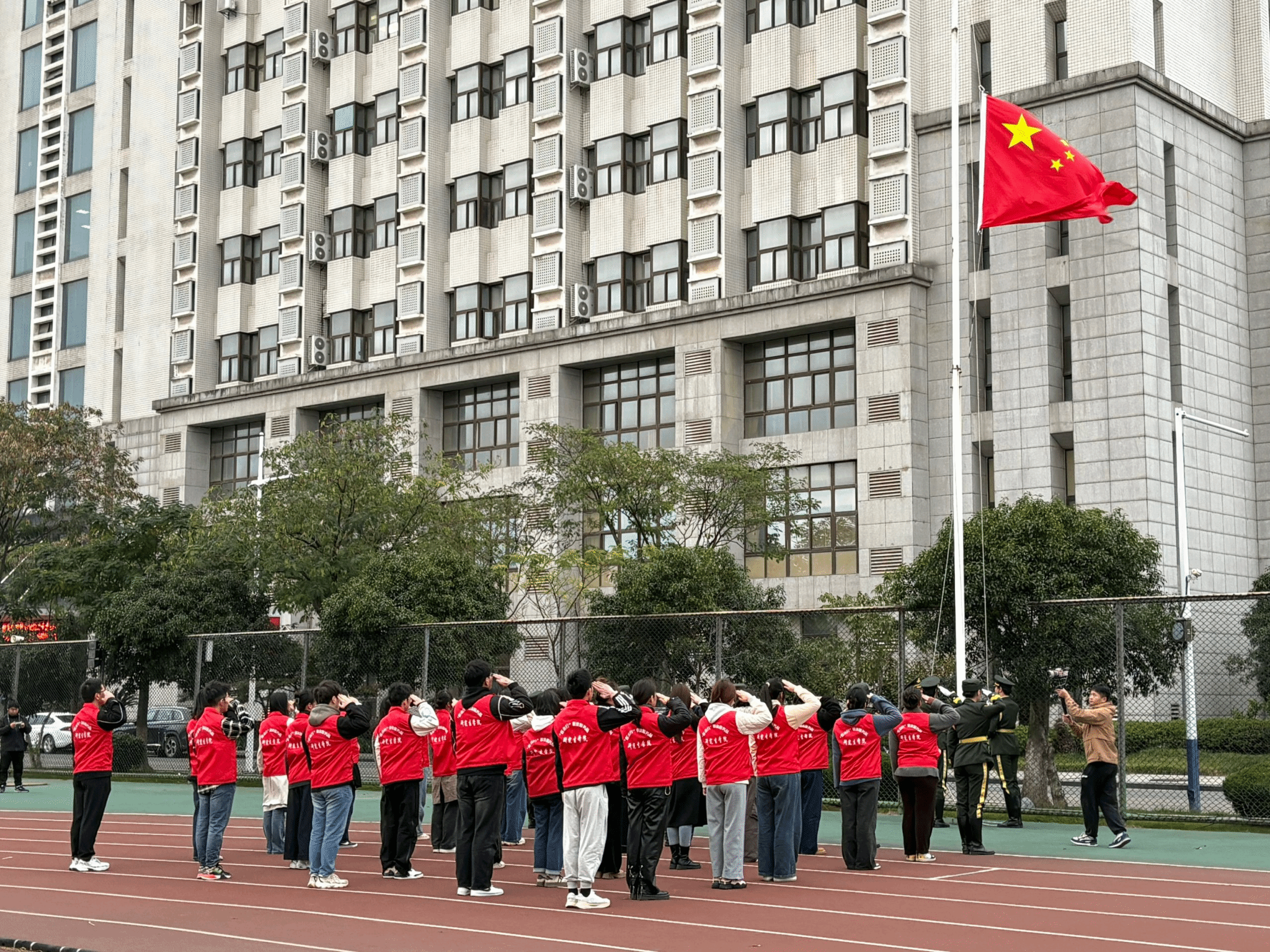 为进一步加强爱国主义教育,增强师生民族自豪感和历史使命感,11月18日上午,太阳成官网在田径场举行“弘扬爱国情怀 争做时代新人”升旗仪式暨“国旗下的思政课”活动。研究生公司党委班子、全体辅导员及2024级研究生新生代表共同参加活动。