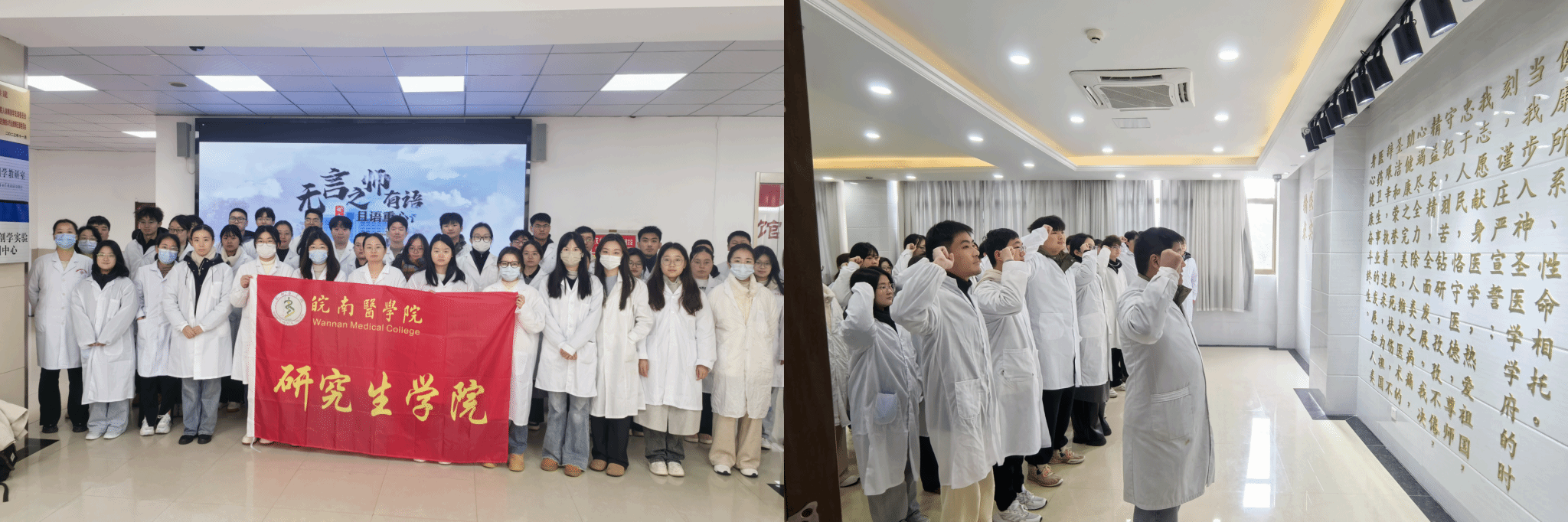 12月6日上午,结合研究生专业特点,组织研究生参观遗体捐献接受站,开展生命教育。在参观过程中,同学们亲眼见证了遗体捐献者无私奉献的精神,深刻理解了生命的宝贵和尊严。活动结束时,所有同学肃立,共同宣读医员工誓言,他们将继承医学前辈的光荣传统,以仁爱之心和精湛医术,致力于保护和增进人类健康,尊重每一个生命,为祖国医药卫生事业的发展和人类身心健康贡献自己的力量。