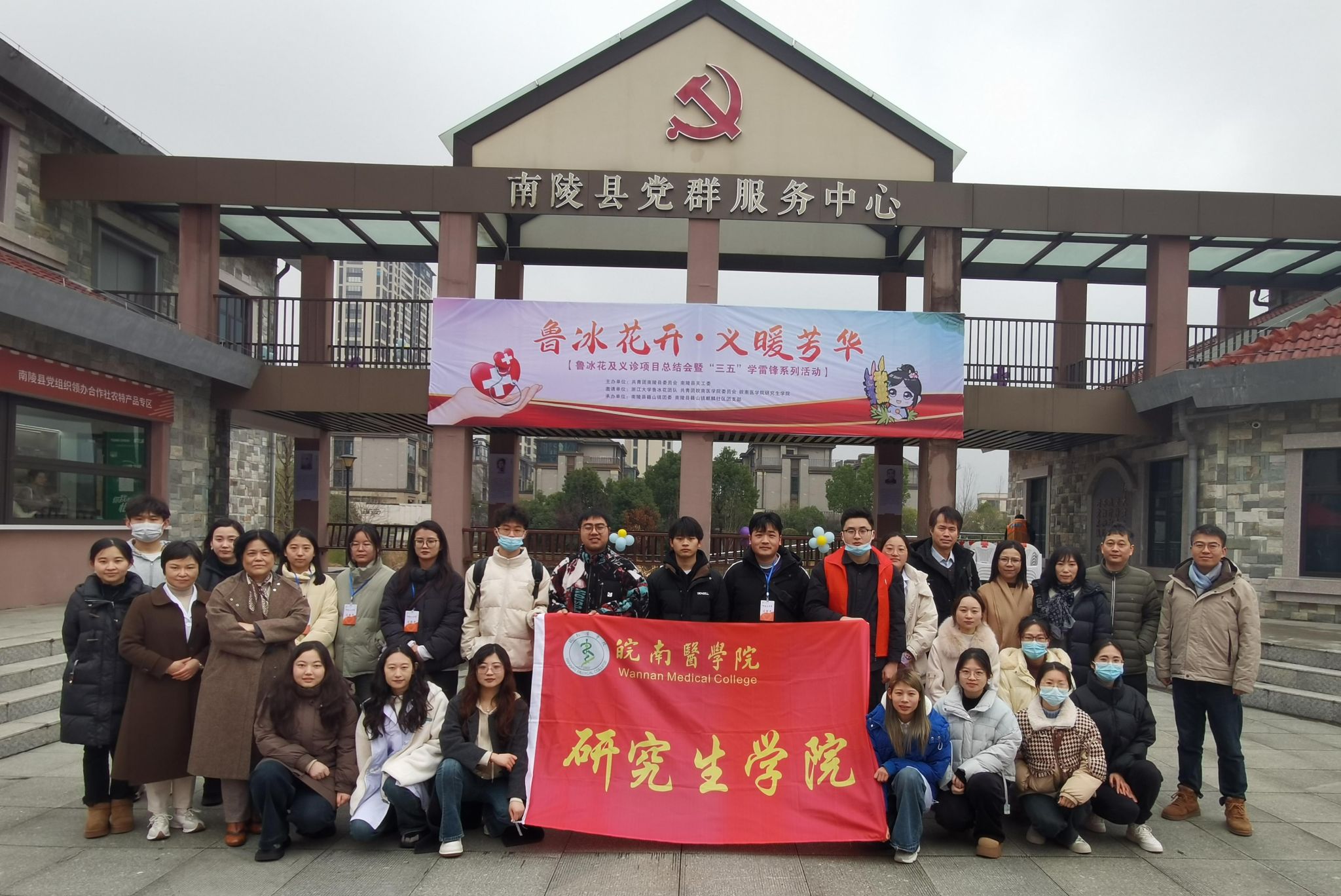 为学习贯彻习近平新时代中国特色社会主义思想,引领广大青年在社会实践中学习并践行雷锋精神,3月4日,研究生公司党委联合校团委、一附院赴南陵县城东芜湖市党的组织生活教育馆开展鲁冰花和义诊项目总结会暨“3·5”学雷锋系列活动。校团委书记饶婷婷,研究生公司党委副书记、副经理戴照福,一附院教育处主任童九翠,13位一附院专家和22名员工志愿者共同参与活动。