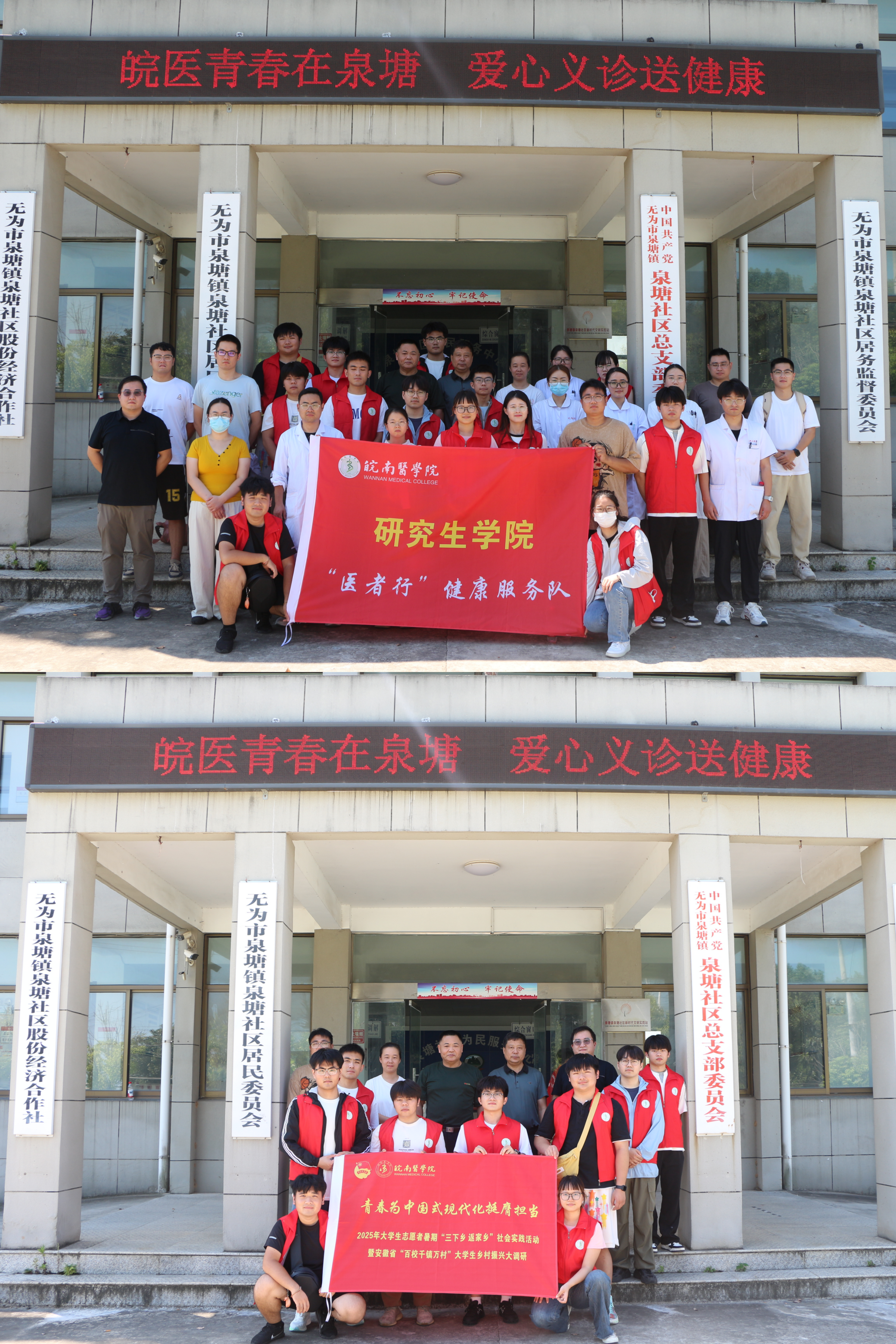 为进一步发挥实践育人作用,带领研究生上好“行走的思政课”,引导研究生在社会课堂中受教育、长才干、做贡献,8月21日,太阳成官网“医者行”志愿服务队前往无为泉塘社区开展健康义诊和“百校千镇万村”乡村振兴大调研暑期社会实践活动。