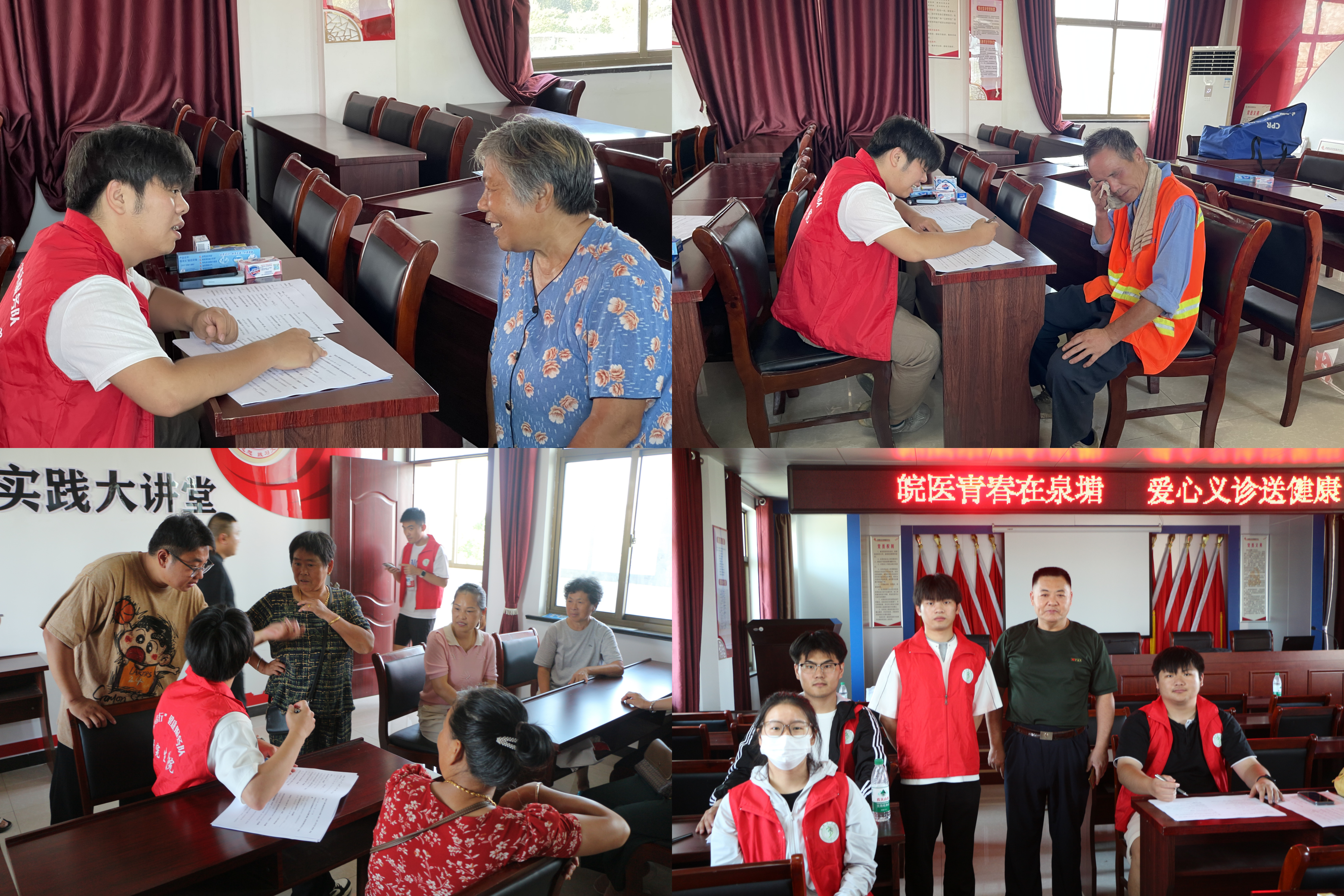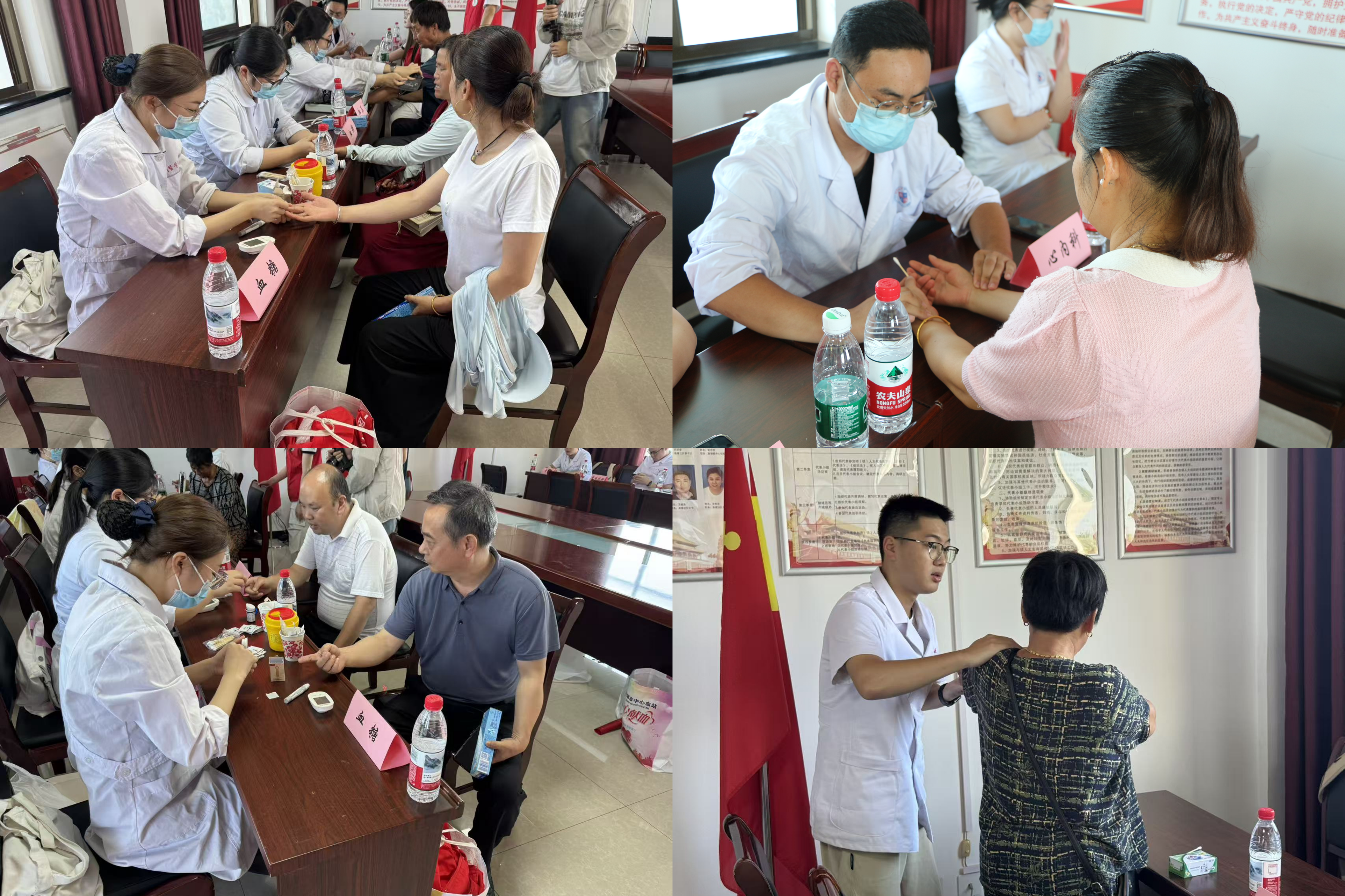 走进社区义诊,为居民送健康。活动当天,“医者行”志愿服务队的成员们在无为泉塘社区党群服务中心开展了健康义诊,在现场为社区居民们提供了量血压、测血糖和各科健康检查等多项服务。队员们耐心地为每一位居民检查身体状况,详细询问他们的病史和日常饮食、生活习惯,给出专业的健康建议和治疗方案。对于一些患有慢性疾病的居民,队员们还细心地叮嘱他们要按时服药、定期复查,保持健康的生活方式。