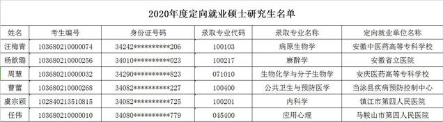 2020年硕士研究生招生结束后,公司共收到《皖南医学院定向就业硕士研究生协议书》6份,现将2020年度定向就业硕士研究生名单公布如下。若有疑问请拨打咨询电话:0553-3932281。