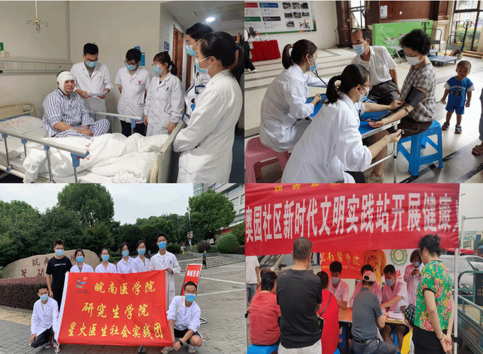志愿者们在弋矶山医院、橡绿园社区、红四方社区、奥园社区开展爱心义诊及健康宣讲,免费为社区居民测量血压,开展健康咨询和常见病健康知识宣讲,帮助社区居民尤其是老年人提高自我预防和自我保健的能力。志愿者们结合专业知识,用实际行动践行“学党史、办实事”。