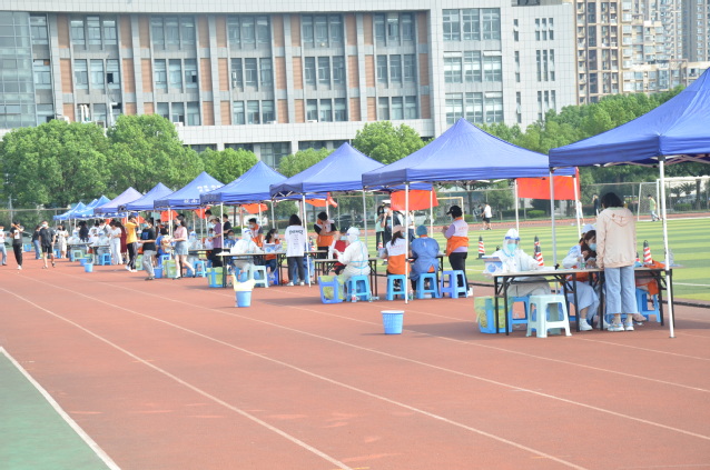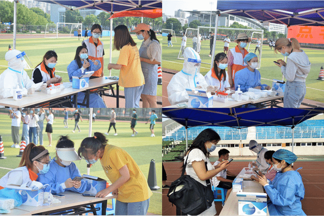 接到校防控办和团委交办的志愿服务任务后,研究生公司党委积极组织、充分动员,研究生党员发挥先锋带头作用,上百人积极踊跃报名,经过遴选确定了志愿者共63人,分为16个志愿服务小组。橘马甲、隔离衣,阳光下熠熠生辉。16组志愿者经过现场培训后,在炎炎烈日下坚守岗位,为全校师生员工登记信息、维护现场秩序,认真配合采样人员工作,为全校师生入学核酸检测工作的顺利完成贡献了力量。活动结束后,同学们纷纷表示:“能够为此次全校师生核酸检测工作出一份力,特别是在这么热的天气条件下,克服困难,完成任务,颇感自豪。同时也充分体会到医务工作者的艰辛和不易,进一步深化了对伟大抗疫精神的认识。今后将牢记党员的初心和使命,继续践行无私奉献的志愿精神,贡献青春力量。”