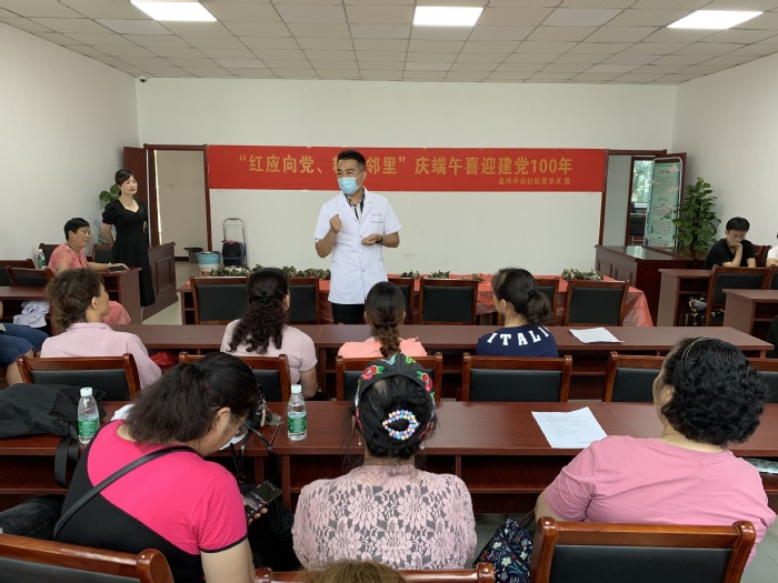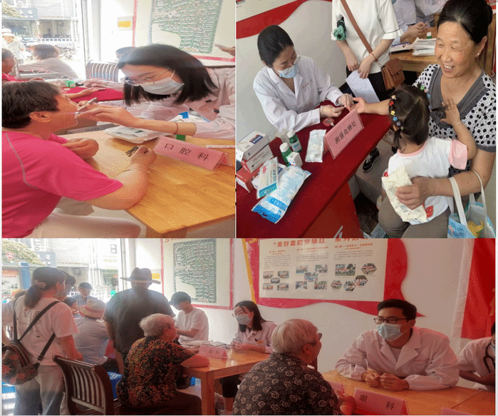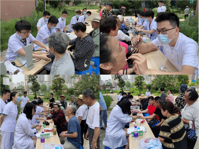 在本次志愿服务活动中,志愿者们结合医员工专业特长,进行了内科、外科、口腔科、眼科、骨科等内容的义诊活动,开展健康检查、咨询诊疗、测血糖、量血压等服务,现场共接待了数百位社区居民问诊咨询。同时举办健康知识科普专场讲座,为社区居民发放健康手册和宣传单百余份,详细讲解疫情防控、高血压、高血糖、高血脂、肝胆疾病等相关知识。为方便行动不便的社区居民,志愿者还携带设备上门入户服务,细心地进行健康体检以及保健知识宣讲。最后在蓝湾半岛社区,志愿者和社区居民一起联欢,煮糯米、包粽子,共庆端午佳节。