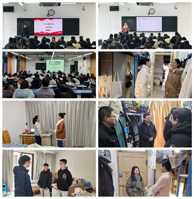 各年级辅导员结合近期开展的民主评议党员等工作,召开主题班会、党支部大会,进行思想政治教育和安全教育;通过走访宿舍、谈心谈话等形式,对重点关注人群进行关心关爱,全面了解研究生思想、学习、科研、生活等多方面的状况。