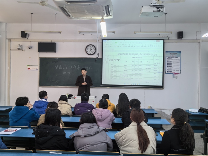戴照福对谈伟一行的到来表示热烈欢迎,并鼓励同学们根据自身条件,把握好单位提供的就业岗位,积极投递简历。招聘人员详细介绍了安徽卫生健康职业学院的整体概况、发展前景以及各专业的岗位设置和研究生招聘具体要求,热切希望同学们能积极报名参与招聘。宣讲结束后,同学们就招聘单位的专业要求、工作环境、薪酬待遇、晋升途径等问题进行提问,招聘人员耐心细致地进行一一解答,现场气氛热烈。