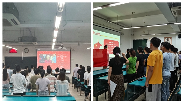会议首先由组织委员吴金蓉宣读了预备党员名单,宣传委员李丹凤带领全体预备党员及正式党员面向党旗庄严宣誓。支部书记吴鹭汇报了支部上半年工作,并对党史学习教育专题组织生活会做了布置。