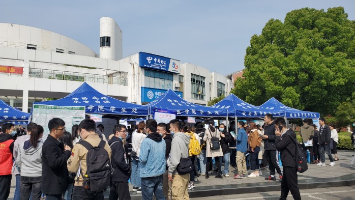 为做好研究生就业工作,落实“六稳”“六保”有关要求,扎实推进党史学习教育“我为群众办实事,我为发展作贡献”实践活动,4月15日,公司在滨江校区老员工活动中心广场成功举办2021届研究生专场招聘会。