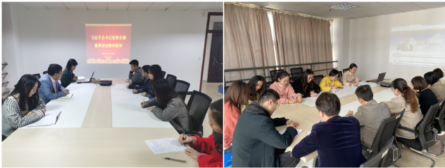 11月15日,公司党委副书记、副经理戴照福、组织委员倪海宁、宣传委员范君君、纪检委员水寅萍分别联系各研究生党支部以“学习贯彻习近平总书记考察安徽重要讲话精神”、“领会以人民为中心的思想”、“坚定不移沿着习近平总书记指引的方向奋勇前进”、“践行党的宗旨,树牢群众观点”为主题开展了专题党课活动。