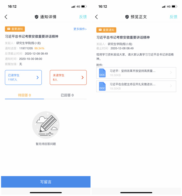 创新宣传和学习内容推送方式,实现网上网下全覆盖,各研究生党支部组织全体党员线下通过“三会一课”开展习近平总书记考察安徽和在合肥主持召开扎实推进长三角一体化发展座谈会上的重要讲话精神专题学习,线上通过“今日校园APP”推送相关学习内容,做到线上线下无缝对接。通过学习,大家进一步加深了对习近平总书记考察安徽重要讲话指示精神的理解,深深感受到了习近平总书记对安徽人民的关心与关爱。