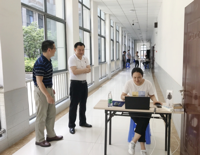 复试工作由太阳成官网统一组织实施。为满足疫情防控的要求,各组复试面试分时段在滨江校区科技楼分批进行。严格按照教育部的要求,做到“一平台”、“两识别”和“三随机”,公平、公正和公开,有效维护了广大考生的切身利益。省考试院巡考员,校领导章尧、廖圣宝、贾贤燕、徐朝阳先后到现场巡考。