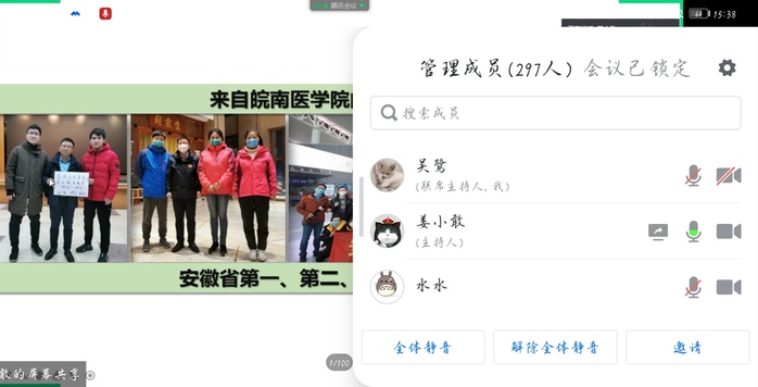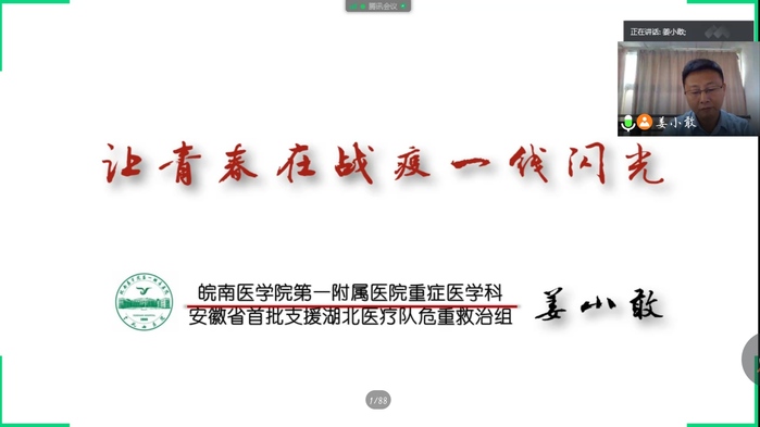 为隆重纪念党的生日,教育引导广大党员坚定理想信念,提升党性修养,7月15日下午,研究生公司党委与麻醉公司党委联合举办战“疫”先进事迹交流会,会议邀请到安徽省第一批支援湖北医疗队员、医疗总负责人、危重救治组党支部书记、组长,弋矶山医院重症医学科副主任医师姜小敢作《让青春在战“疫”中闪光》的讲座。交流会由麻醉公司党委书记、副经理李娜主持,300多名师生党员、入党积极分子通过现场和腾讯会议两种方式参加了讲座。