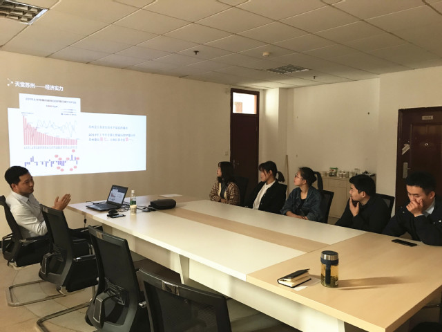 高冰首先向苏州口腔医院介绍了公司2020届口腔医学专业毕业研究生的情况,随后的宣讲活动由苏州口腔医院人事科科长朱健男主持。朱健男向现场的员工详细介绍了医院发展历程、福利待遇和应聘程序等,并对医院所在地苏州进行了简要介绍。宣讲环节结束后,员工与医院就相关问题现场进行了交流和讨论。