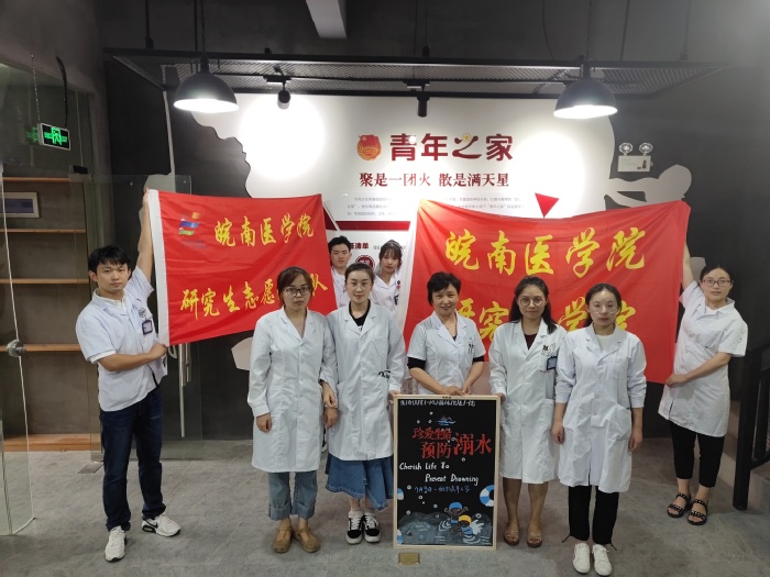 为积极响应学校号召,增强广大志愿者的责任感和使命感,7月10日,研究生志愿服务队前往广德县开展了为期一天的暑期社会实践活动。本次服务队成员由2017级儿科学专业的硕士研究生组成,第一附属医院主任医师陈爱斌为指导教师,活动主题是“珍爱生命 预防溺水”。