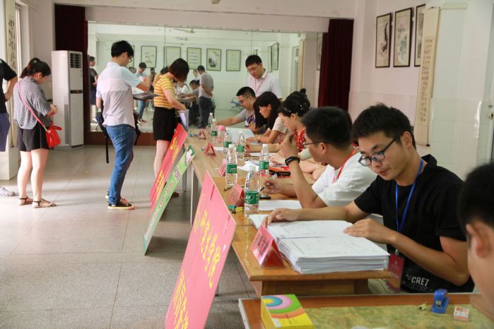 2019年7月7日是2019级临床(口腔)医学硕士专业学位研究生报到的日子,在后勤管理处和财务处等部门的配合下,赭麓校区研究生迎新现场在上午7:30就全部布置完毕,设置了资格审查、缴费审核、收缴材料、材料发放等工作小组,程序规范、手续简洁的“一站式”服务大大提升了工作效率,并缩短了同学们的报到时间。同时,迎新现场还设置了员工党团服务队和咨询岗,为远道而来的家长和同学答疑解惑,进行引导。