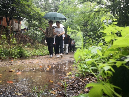在扶贫活动中,队员们冒着大雨,跋涉泥泞乡村小路,前往红杨树社区、万村村、六桥村,对当地5户贫困老人进行慰问,发放大米、食用油和牛奶等爱心物资。通过对贫困户慰问,与村干部交流,研究生们对当地贫困家庭现状和国家扶贫政策有了一定了解。