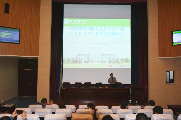 科研处副处长李怀斌教授作了《高等学校预防与处理学术不端行为相关文件解读及案例分析》专题讲座。讲座中,李怀斌详细解读了高校预防与处理学术不端行为相关文件的背景及内容,并结合国内外发生的实际案例,讲述了研究生教育中的一些学术不端行为及其严重危害,强调了预防学术不端的重要性和紧迫性。