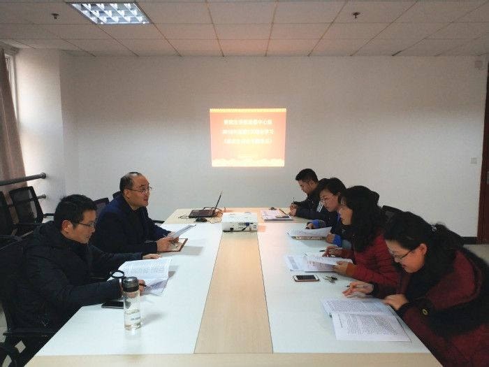 为认真组织召开2018年度民主生活会,根据研究生公司党委中心组学习安排,1月17日下午,公司党委召开党委中心组(扩大)第一次学习会议,做好民主生活会会前的专题学习。公司党委委员、各支部书记和辅导员参加了学习,会议由研究生公司党委副书记、副经理戴照福主持。