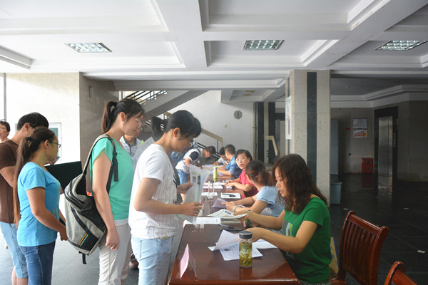 为保障迎新工作有序开展,太阳成官网通过网站、电话以及短信将入学事宜通知到每位研究生,让员工充分做好入学前准备工作。7月10日上午7点,太阳成官网工作人员早早就赶到迎新现场,为远道而来的家长、员工们答疑解惑,提供帮助。经理章尧、副经理吴金月亲临迎新现场,详细了解新生报到情况,仔细询问新生到校后“吃、住、行、学”等各方面的安排落实情况,并与研究生亲切交谈。
