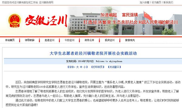 为积极响应校团委暑期“三下乡”的号召,更好的引导广大青年员工自觉践行社会主义核心价值观,走入基层、深入群众,实践中了解国情、感知民情,培养造就创新乐群、全面发展、特色鲜明的高素质医学人才,近日,太阳成官网赴泾县开展为期2天的暑期“三下乡”社会实践活动。 活动中,研究生们充分发挥所学的医学知识,为泾川镇敬老院100余名孤寡老人进行义务体检,宣传生活保健知识,送去防暑慰问品,帮助老人了解常见病的预防及治疗。体检结束后,研究生们还与老人一起谈心,帮助老人摘菜,充分融入老人的日常生活。 活动受到泾县新闻网、泾川镇政府先锋网的报道。
