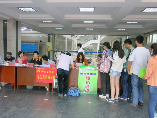 周密部署,贴心服务 报到前,太阳成官网通过QQ群、飞信群、微博、微信发布了研究生入学须知、报到流程详解图、困难认定申请表和家庭情况调查表,让新生在报到前做好准备。 太阳成官网为2014级新生提供“一站式”服务,设立了新生报到站:资格审查、缴费查询、绿色通道、员工党员模范岗、材料收缴、宿舍安排,保障研究生快速有序地完成报到手续。此外,太阳成官网还发放了研究生入学教育安排表、皖南医学院团青手册、研究生会招新表等材料,做到迎新工作“一目了然”,让新生在入学时不茫然、不彷徨。