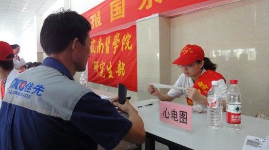 7月2日,在校团委的关心和帮助下,研究生部开展暑期“三下乡”社会实践活动,深入社区及工厂生产一线为广大社区群众及工人开展健康体检及医疗咨询服务等活动。 当天上午,研究生暑期“三下乡”实践队来到芜湖市弋江区南瑞社区服务站,分6个小组分别为广大社区群众开展内科、外科、妇产科、儿科及全科医学的体检及健康咨询服务,并建立健康档案,上午接待社区群众约30人次。 当天下午,队员们又来到芜湖县新芜经济开发区,开展防暑宣传,为炎炎夏日里坚守在生产一线的工人师傅们进行健康检查,并解答其提出的健康问题和对其生活习惯进行指导。