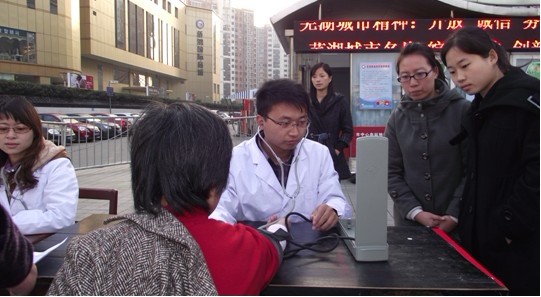 初冬时节,天高气爽。为发扬党员先进性,增强员工“感恩社会,回报社会”意识,研究生部联合申元街街道办于2011年11月24日下午在凯德广场举行义诊活动,为广大市民提供免费测量血压和健康咨询服务。 整个活动从下午两点开始到五点结束,其间阳光灿烂,温暖着每个人的心,同学们对义诊活动的热情也持续增高。显眼的宣传海报,忙碌并且热情高涨的同学们,路过的行人纷纷驻足咨询。同学们有的积极主动的向来往的行人散发传单,宣传健康教育知识;有的认真仔细的为市民测量血压,并耐心解答他们的疑惑,充分展现了医员工的风采。大家的表现得到了周围群众的一致认可,欢迎和赞赏。 此次活动不仅仅让同学们学会感恩,学会回报社会,并且在活动中,我们发现广大群众的健康意识较以往有很大提高,对医生也抱着较高的期望,同学们纷纷表示要加倍努力学习医学知识,以过硬的本领,全心全意为人民服务,奉献自己的青春。