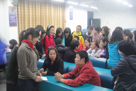 交流会中,各位研究生学长根据个人的考研经历,向学弟学妹们教授了考研的方法和技巧,并就日常学习习惯,提出充分利用学校资源、明确读书目标等诚恳的建议。同学们踊跃地向学长们提出了自己在考研方面存在的疑问,学长们一一解答并给与鼓励,使同学们深受启发。研究生们还还留下了自己的电话号码和寝室地址以便活动结束后进一步的交流。