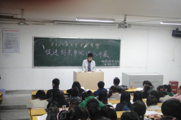 为深入学习宣传贯彻党的十七届五中全会精神,从理论层面深化对五中全会的重大意义、中央“十二五”规划(建议)确立的战略思想、主要目标等的理解和把握,2010年11月10日,研究生部党总支员工第二党支部全体党员、预备党员及入党积极分子晚上8点在北校区3101教室举行以“促进创先争优深入开展”为主题的学习活动。会议由辅导员倪海宁主持。