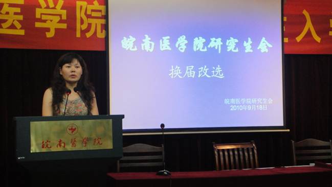 9月18日晚上,2010级研究生会换届选举在北校区学术报告厅成功举办。研究生部党总支副书记、副主任郑兰荣,医学一系辅导员邓根飞,护理学系辅导员刘海军及上届研究生会干部担任评委。