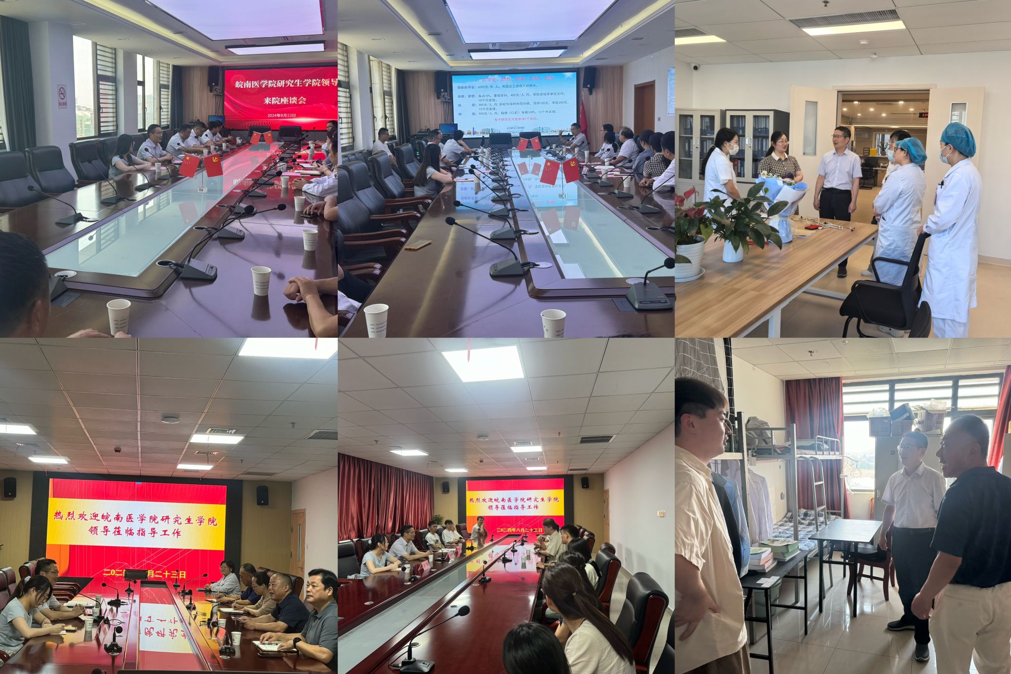 为充分了解研究生管理、教学及就业等情况,8月23日,研究生公司党委书记、经理刘晓平及相关工作人员赴安庆市立医院和安庆市第一人民医院调研,安庆市第一人民医公司党委书记鲍习化、副经理李小月、副经理毕满华,安庆市立医院副经理朱娟、副经理乔锐,两所医院科教科负责人、导师代表及研究生参加会议及调研。