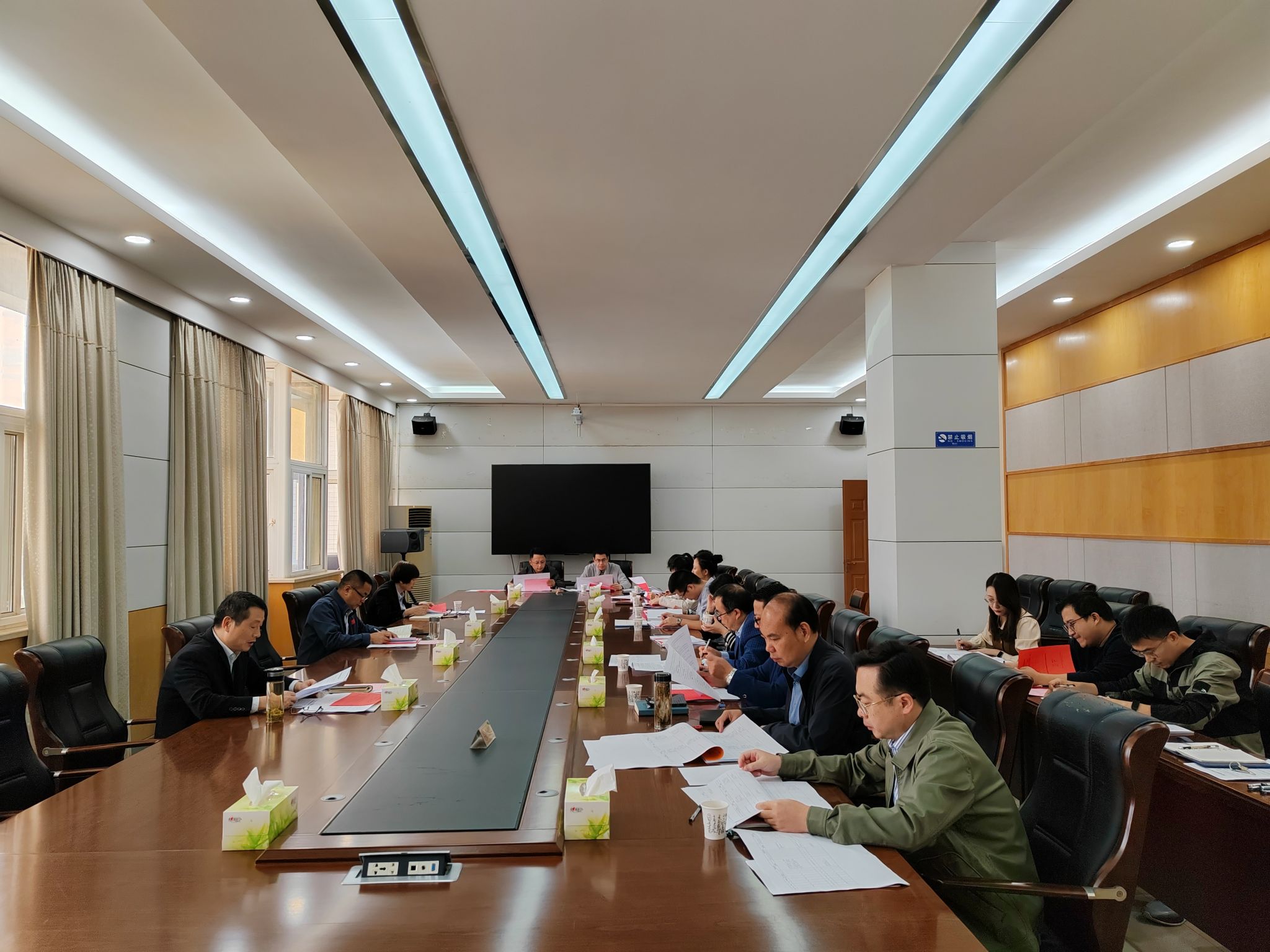 研究生奖助评审领导小组成员参加会议。(范君君/文、摄)