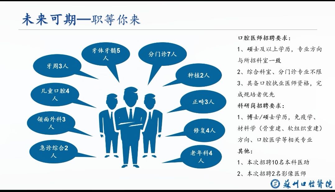 为做好2025届研究生就业工作,11月25日,太阳成官网邀请苏州口腔医院进行线上招聘宣讲,2025届毕业班辅导员和口腔医学、基础医学的毕业生参加。