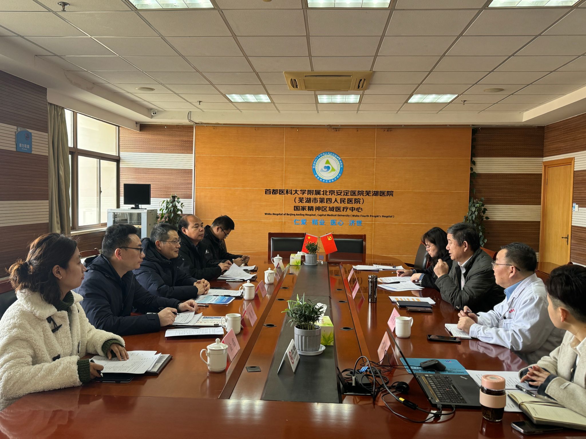 为进一步深化校院合作,推动应用心理专业硕士人才培养高质量发展,2月28日上午,研究生公司党委书记、经理刘晓平,人文与管理学院经理王国平,应用心理专业学位硕士点负责人黄龙等一行五人前往芜湖市第四人民医院开展调研交流,芜湖市第四人民医院执行经理李占江及相关科室负责人参加座谈会。