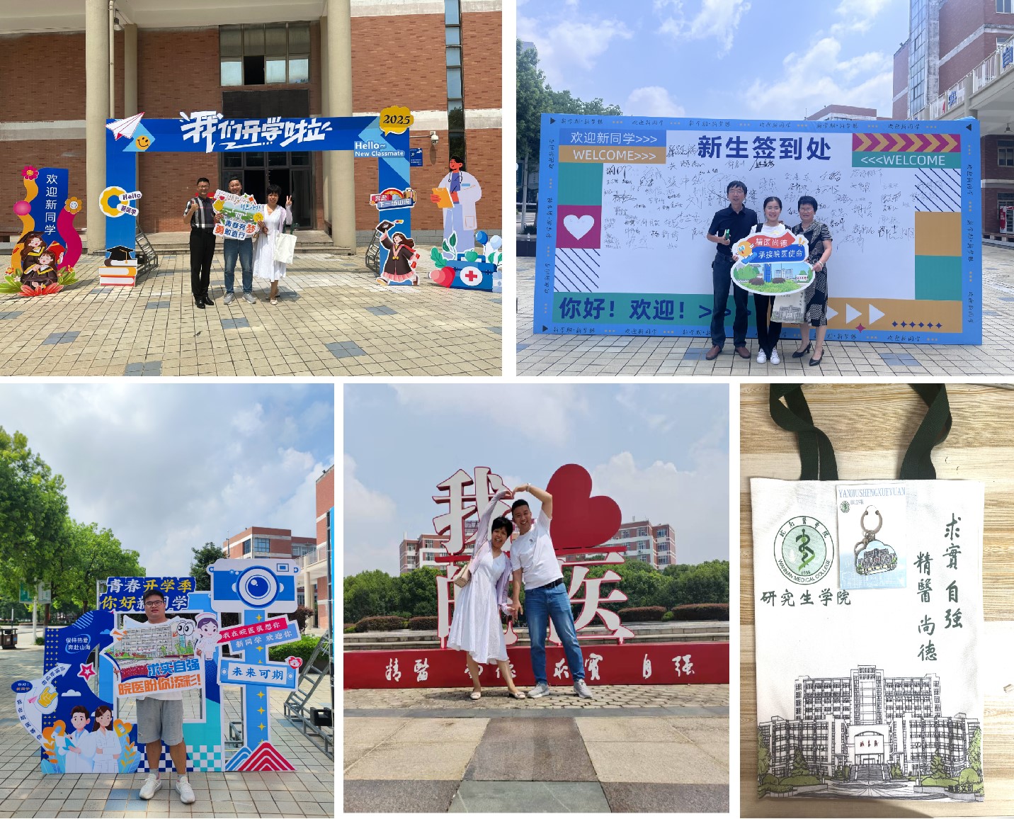 太阳成官网积极营造温馨迎新氛围,在报到处入口设置欢迎牌、签名墙、拍照打卡点、皖医景色手持卡等,方便员工和家长合影留念。一站式电子信息采集、资格审核、材料收发,让每位新生感受到了学校热情周到的服务和关心。志愿者身着红马甲穿梭在校园各处,帮助新生搬运行李,进行反诈宣传,开展朋辈交流。学院今年还为每位新生赠送了精心设计的文创帆布包和钥匙扣,让新生进校之初就接受一次润物无声的入学教育。