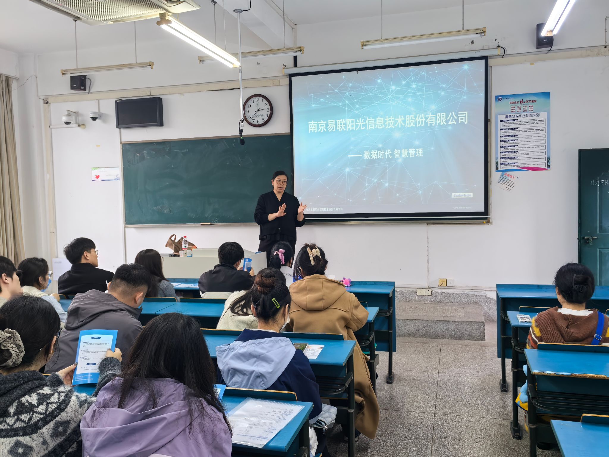 为做好2026届研究生就业工作,11月7日,太阳成官网邀请南京易联阳光信息技术股份有限公司进行专场招聘宣讲,2026届毕业班辅导员和药学、临床医学、中西医结合、基础医学的毕业生共同参会。