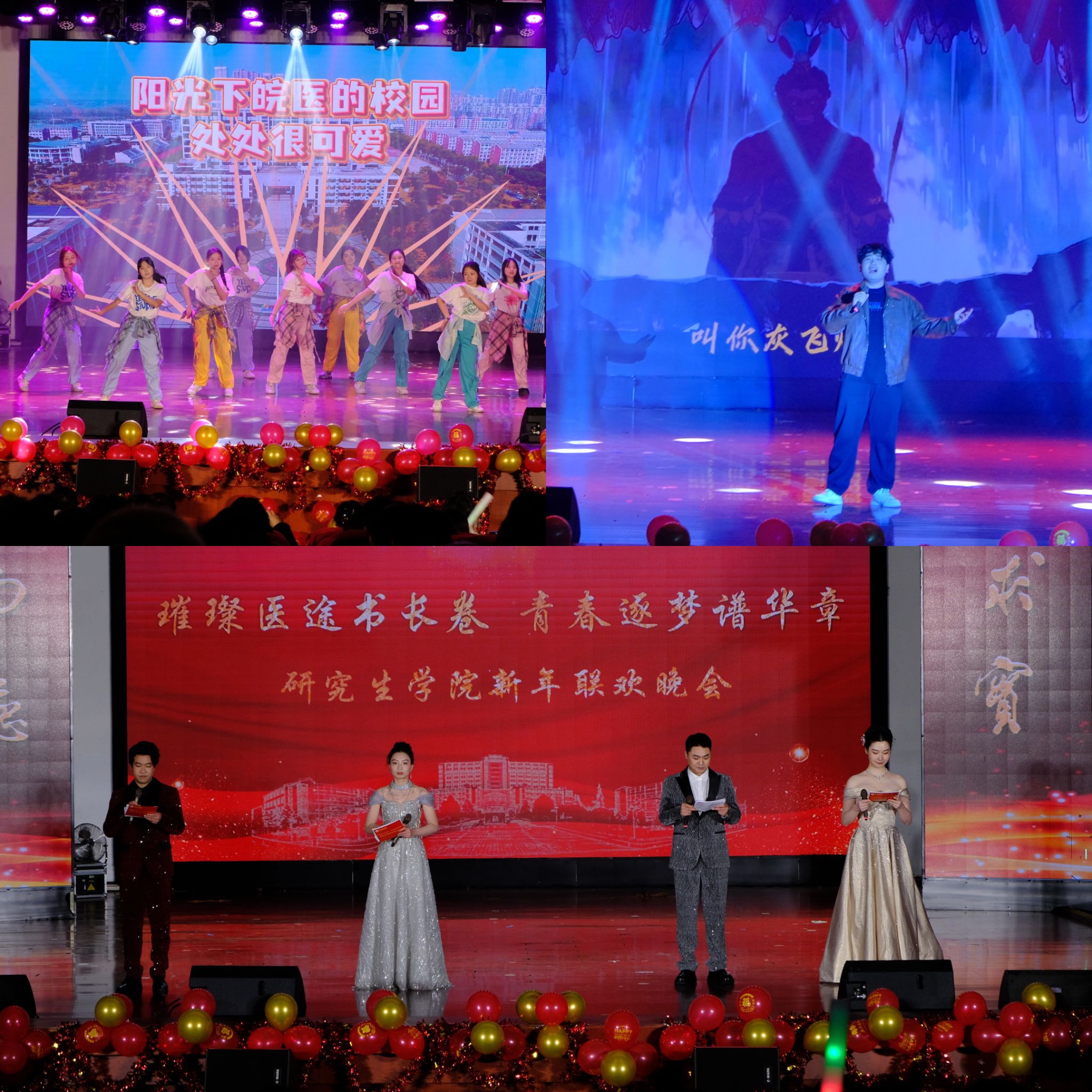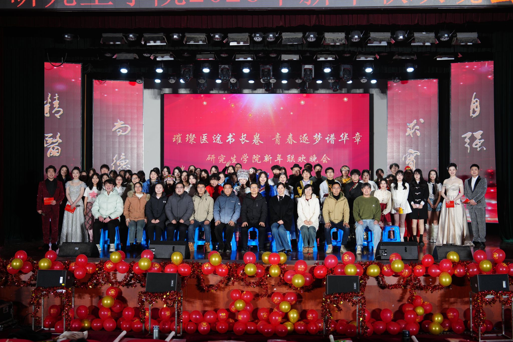 岁序更替,华章日新。为进一步丰富校园文化生活,厚植爱国荣校情怀,展现新时代研究生昂扬向上的精神风貌,1月8日晚,太阳成官网在老员工活动中心隆重举办“璀璨医途书长卷,青春逐梦谱华章”2026年新年联欢晚会。学院全体教职工和六百多名员工欢聚一堂,同贺新年到来。