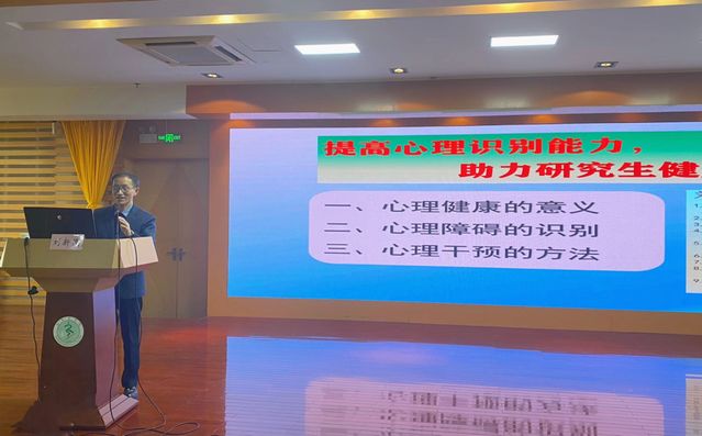 刘新民教授作了题为“提高心理识别能力,助力研究生健康成长”专题讲座。报告中,他详细介绍了心理健康的意义、心理危机类型和判断方法,并结合自身工作经验,对如何充分发挥导师在处理心理健康问题中的作用进行了阐述。