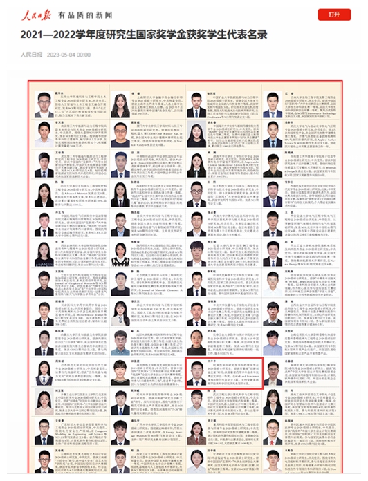 5月4日,《人民日报》刊登了2021-2022学年度研究生国家奖学金获奖员工代表名录,展示了全国4.5万名优秀研究生国家奖学金获奖员工中的100名优秀代表风采。公司2020级药理学专业硕士研究生闫干干成功入选,这也是安徽省唯一获得风采展示的硕士研究生代表。