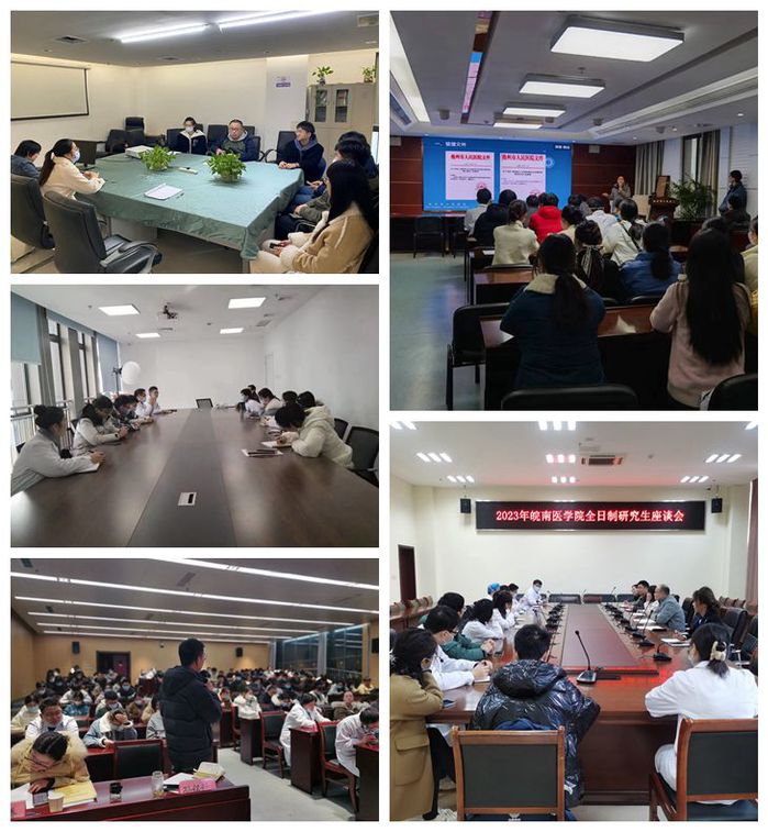 各培养单位积极落实,2月22日-3月2日,第一附属医院、省立医院、芜湖市第二人民医院、芜湖市第四人民医院、池州市人民医院、安庆市第一人民医院、安庆市立医院、黄山市人民医院等培养单位分别召开师生座谈会;生物学、应用心理学、公共卫生与预防医学等学位点通过召开组会、研讨会、座谈会等方式,与员工面对面交流,点对点了解员工的生活情况及学业进展情况。