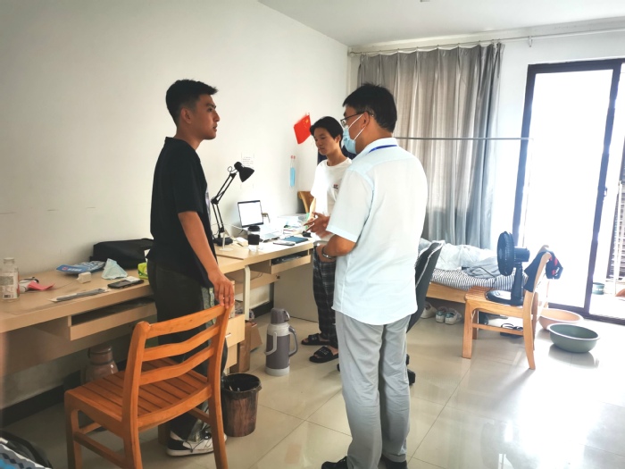 在与新生的交流中,学院领导和老师亲切询问了同学们的住宿情况、到校感受,认真倾听记录了同学们来校后所遇到的问题,及时帮助新生解决困难;勉励同学们珍惜时光,学好专业知识。同时,老师们还向同学们宣传了防诈骗等校园安全注意事项及校园疫情防控有关规定,提醒新生注意财产安全等问题。