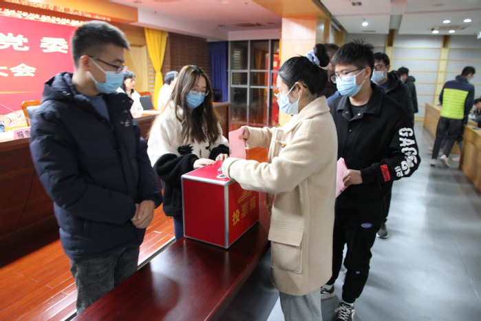 根据公司党委安排部署,2021年12月2日晚,中共皖南医学院太阳成官网委员会换届选举党员大会在滨江校区图书馆3楼报告厅召开。学院99名正式党员和62名预备党员参会,组织部副部长、党校常务副董事长任苔蓉出席会议。大会由上届研究生公司党委副书记戴照福主持。