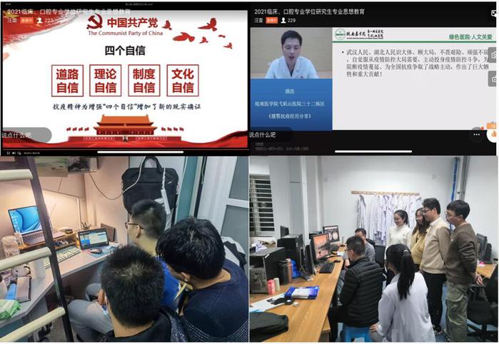 12月8日晚,第二场报告会通过线上视频直播的方式进行,选用一附院教育处推送的重症医学科姜小敢、颜浩两位老师的录播报告,面向培训班学员和2021级临床、口腔专业学位研究生。两位老师分享了自己白衣为甲驰援武汉的抗疫经历,带领各位研究生深入学习抗疫精神,体会我们国家制度优势,帮助各位同学进一步明确作为一名医学研究生的使命担当,坚定理想信念。