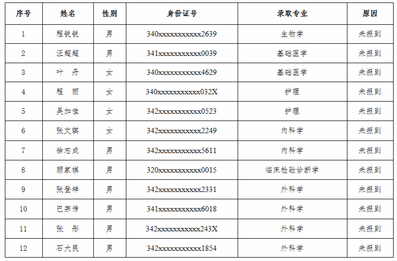 根据《皖南医学院研究生学籍管理规定(修订)》(校政〔2022〕40号)第四条有关规定,开学两周后仍未到学校办理报到手续的研究生,公司视其放弃入学资格。现将放弃入学资格的研究生名单公示如下,特此通告。