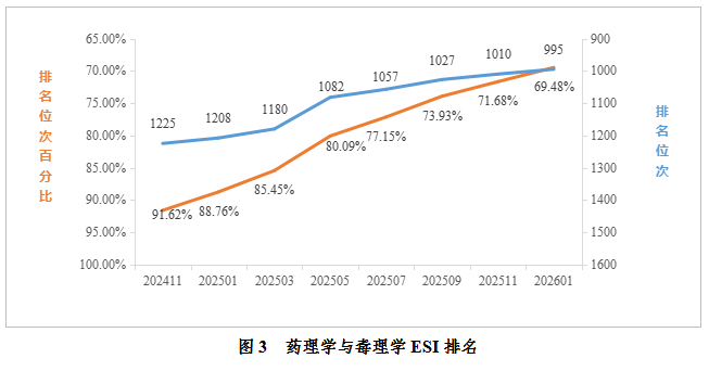 药理学与毒理学:据2026年1月数据统计,公司药理学与毒理学进入ESI前1%。全球共1432家进入全球前1%,公司位于全球第995名,排名较去年同期提升213位;位次百分比为69.48%,较去年同期上升19.28%。